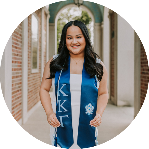 Emmalee Evans is a 2023 December graduate from Oklahoma State University. She has a Bachelor of Science in human sciences and a minor in microbiology. She has served as both the Secretary and President of Delta Sigma Chapter. Emmalee enjoys dessert, traveling, and cozying up with a movie or good book and her two dogs.